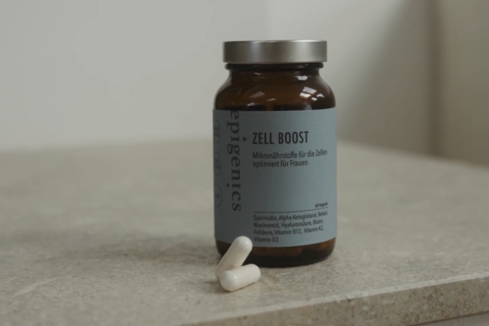 Durch Zufall stieß ich auf den Podcast StaYoung von Nina Ruge. Nina Ruge deckt gekonnt und unter Zuzug von Expertinnen und Experten sämtliche Themen im Bereich Langlebigkeit und Frauengesundheit ab. Das hat mich komplett abgeholt. Dort wurde ein Produkt erwähnt, das sofort mein Interesse weckte: Zell Boost von epigenics.